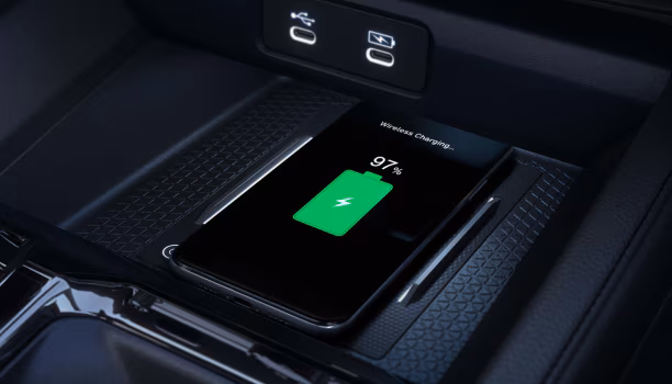 Skip the hassle and risk of fumbling with cords by charging your compatible smartphone with the available wireless charging pad.