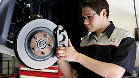 When you press your Honda’s brake pedal, the friction material on the brake pads is pushed against the brake discs to create friction which resists the rotation of the discs. Each time the brakes are used, a small amount of friction material, or “lining”, is worn off. Eventually, the thickness of the lining will diminish to the point where replacement is necessary. Exactly when this occurs depends several factors from driving habits, vehicle usage and frequency of brake maintenance. Regular inspection and servicing is required to keep your braking system in top working order. Follow the maintenance requirements stated in your Honda’s Owner’s Manual. When brake pads or shoes require replacement, insist on Genuine Honda Parts to maintain the original performance and help keep your Honda as safe as it was crafted to be. Plus, always enjoy Honda’s Lifetime Brake Pad Guarantee** on Genuine Honda replacement brake pads.
