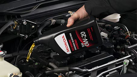 Engine oil lubricates the engine’s moving internal parts to protect them against wear and reduce friction while also helping to cool the engine. As your oil deteriorates with time, it loses its ability to properly protect the engine. Follow the recommended oil change intervals specified by your Honda’s Owner’s Manual or Maintenance Minder system (if equipped).